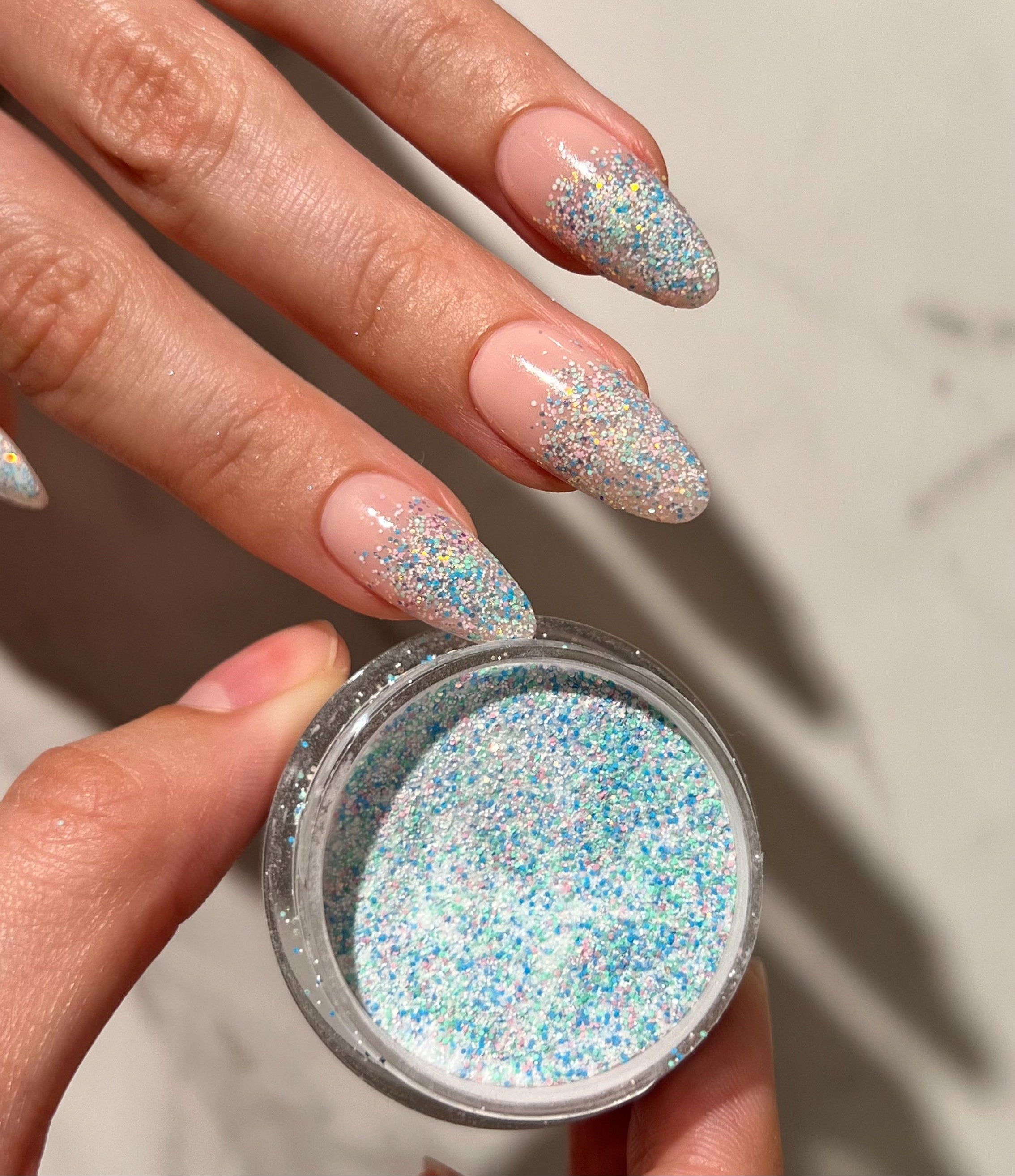 Glowdip werkt met dipping powder: een techniek waarbij je nagels laag voor laag worden opgebouwd met een speciale poeder en vloeistoffen. Het resultaat: